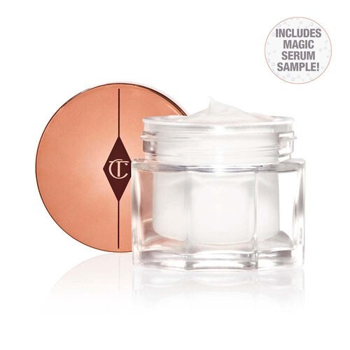 مضاعفة السحر! كريم شارلوت السحري، المحبوب من قبل المشاهير وفناني الماكياج وأطباء الجلد حول العالم، هو المرطب المعجزة الفوري للبشرة الحائز على جوائز والذي ينعم البشرة ويشدها ويملأ مظهرها في خطوة واحدة! مع تقنية Cushion + Lift Mesh، ومركب الببتيد ذو التأثير الممتلئ، وفيتامين C وE المشرق وحمض الهيالورونيك المرطب، فإنه يخلق قماشًا مثاليًا بحيث يبدو مكياجك دائمًا أكثر جمالًا ويدوم لفترة أطول! إنه الندى السحري للشباب والإشراق في مرطبان!
